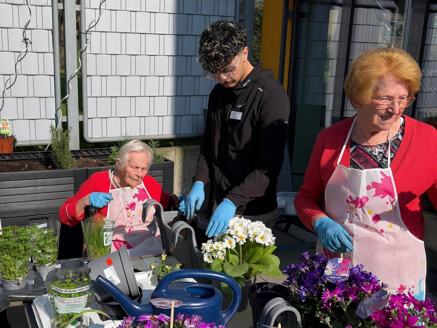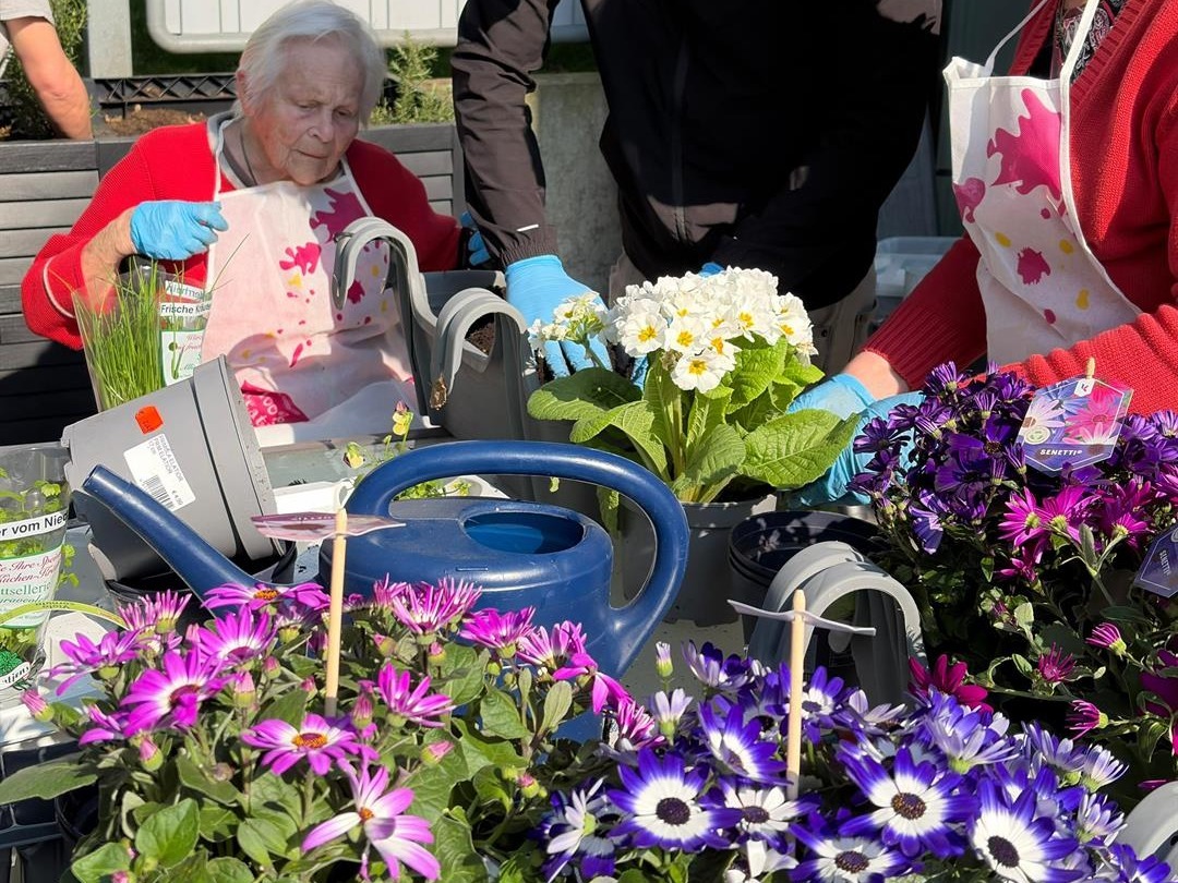 Unsere Bewohnerinnen und Bewohner haben mit viel Freude, Neugier und tatkräftigem Einsatz gemeinsam Blumen und Gewürze gepflanzt. Am diesem Tag war es besonders lebendig und farbenfroh.
